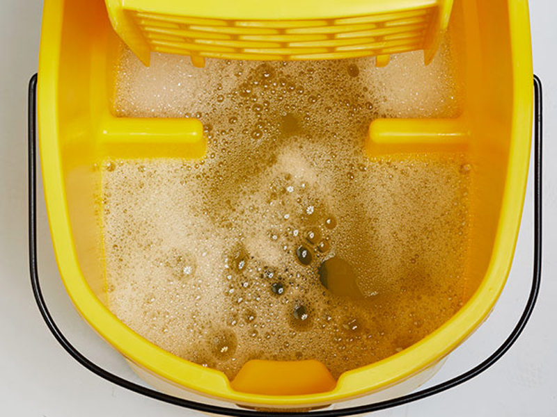 Integrated handles help ensure a secure grip to lift and empty the mop bucket.