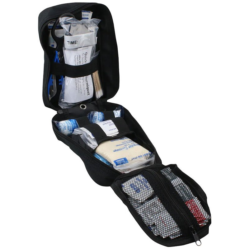 - Contains wide variety of first aid supplies for treating bleeding, burns, cuts and scraps.