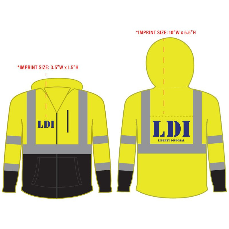 5XL CLASS 3 BLACK BOTTOM HOODIE W/FULL ZIPPER W/LIBERTY DISPOSAL INC LOGO 1C 1C 1L